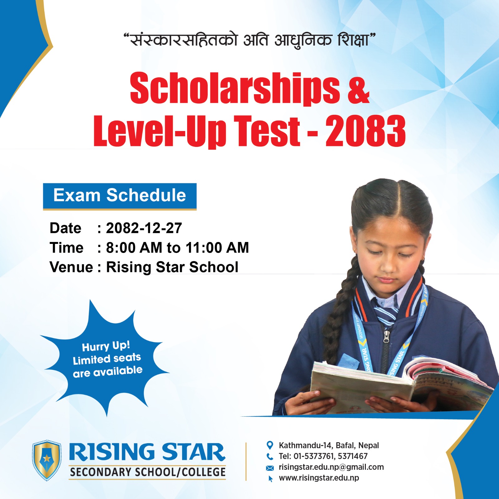 Located at the heart of Kathmandu, Rising Star School (2036 BS) has a rich history of academic excellence and a strong commitment to fostering holistic development of students. It has been offering a comprehensive and rigorous academic curriculum as well as conducive ambiance for learning and well-equipped infrastructure with sufficient playgrounds for the students. Beyond academics, we recognize the importance of extracurricular activities in shaping well-rounded individuals.